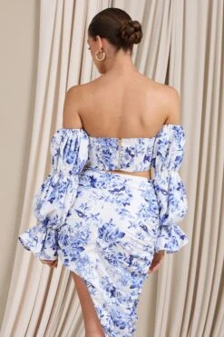 Calla is the champagne midi dress for wedding guests ready to make a sweeping entrance, designed in a luxuriously soft crepe with a hint of stretch to accentuate your curves. This ruched dress is characterised by a plunging neckline and long ethereal sleeves with flared cuffs to complement an angled hemline.