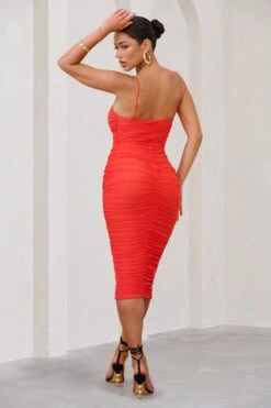 The Camille midi dress is sleek and curve-contouring, perfect for special occasions. With a gorgeous organza flower detail on the neckline and daring front keyhole to reveal your bronzed skin, this midi dress is super flattering and perfect to show off your hourglass silhouette with its bodycon fit and the bum ruching will enhance your best assets. Make an entrance with this exquisite look at your birthday party, black-tie event or glam night out. This gorgeous style will be your new go-to occasion fave!