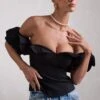 Our statement top Dream Daze demands attention with floaty black feathers wrapping every inch of its bandeau design. As comfortable as it is eye-catching, this crop top also features a subtle zip closure. Pair Dream Daze with tailored leather trousers and you’ll stand out in any party setting.