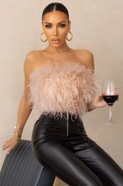Our statement top Dream Daze demands attention with dusty pink feathers wrapping every inch of its bandeau design. As comfortable as it is eye-catching, this crop top also features a subtle zip closure. Pair Dream Daze with tailored leather trousers and you’ll stand out in any party setting.