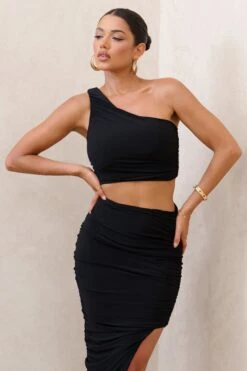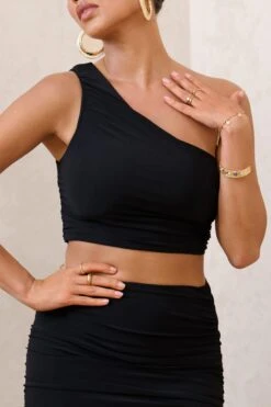 Eclipse | Black One Shoulder Ruched Crop Top