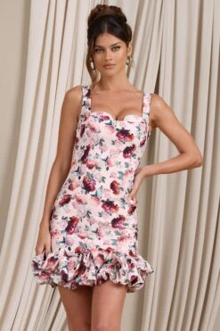 Flourish is the fitted floral dress to showcase your curves in the summer occasions to come. Tapered by waist darts and wrapped at the hem by a light ruffle trim, this short strappy dress would be perfect for birthday girls or modern brides with contemporary tastes.
