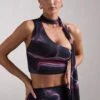 Booked a last minute trip somewhere sunny or simply in need of a new statement shirt? Marisela is a piece to solve both problems designed in luxurious bright blue satin. Classic but with a contemporary twist, this collared shirt features a long flared sleeves and a cropped hemline that’s gathered casually into a knot.