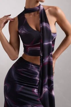 North Wind | Black Printed One-Shoulder Crop Top With Scarf