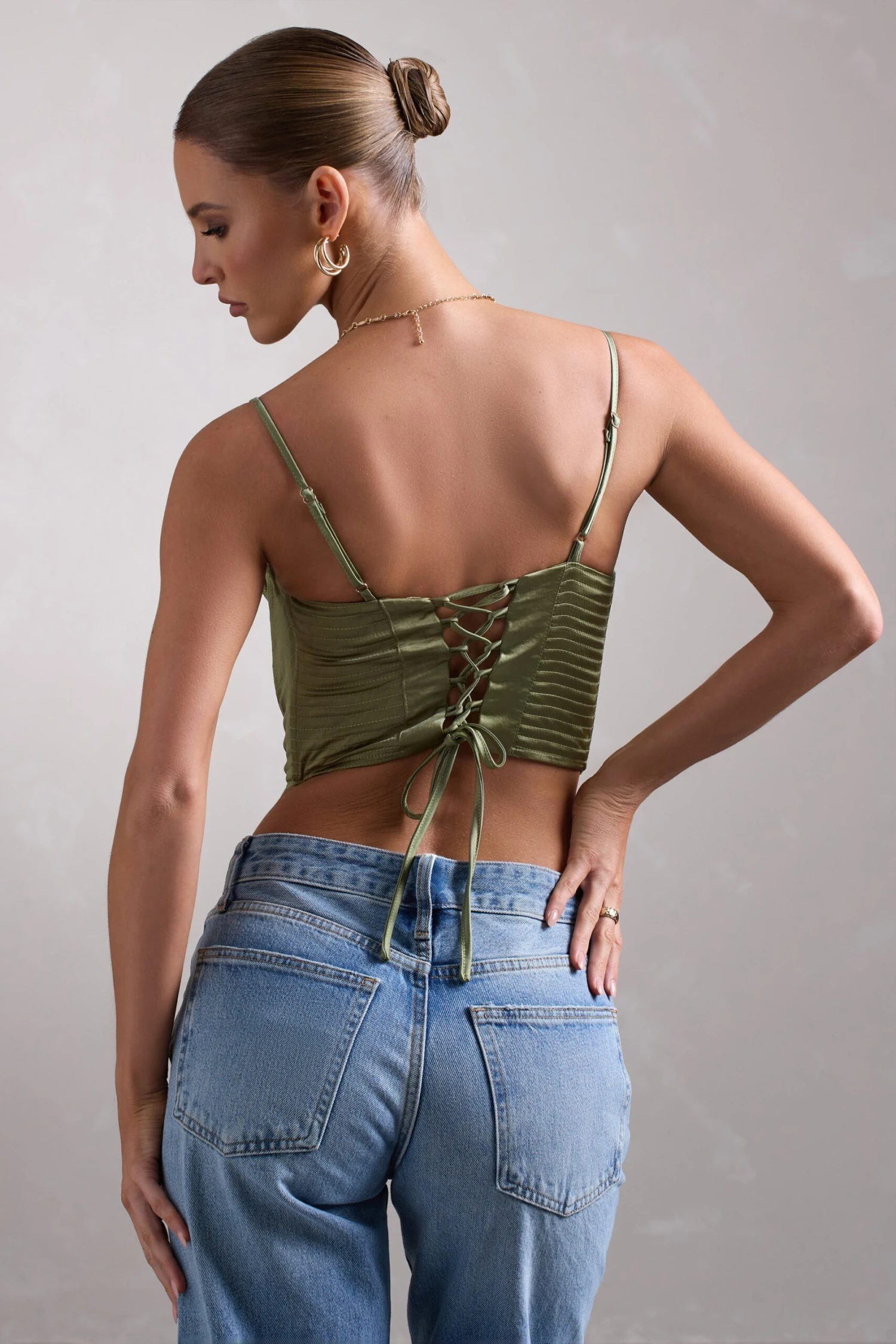 This aptly-named satin top certainly deserves a glass of prosecco, boasting a waist-cinching corset and a draped neckline held by slim cami straps. Easily dressed up or down to suit any and every special occasion, we know this olive green top will stay in your formal wardrobe for many seasons to come.