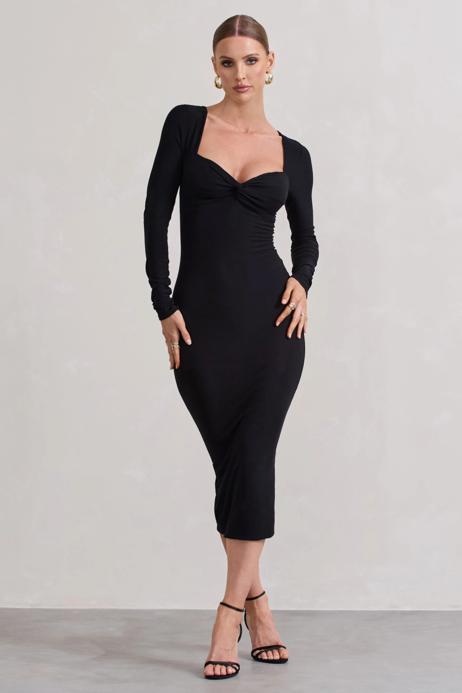 From casual lunches to cocktails with the girls, Sammy covers all bases. This black midi dress has been crafted in a soft brushed jersey that is both extremely comfortable and curve-contouring. Try styling Sammy with some court shoes like Blade for an elevated evening ensemble.Â