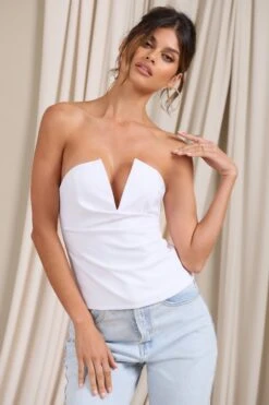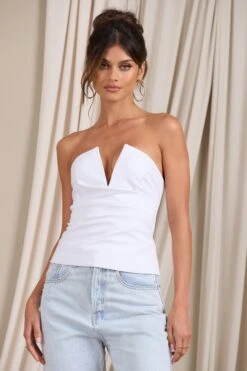 Valerie is the classic, curve-loving corset your wardrobe needs this summer season, crafted from a stretchy white crepe with concealed boning and artful gathers to accentuate your waistline. Style this strapless corset top with light-washed jeans for a laidback look.
